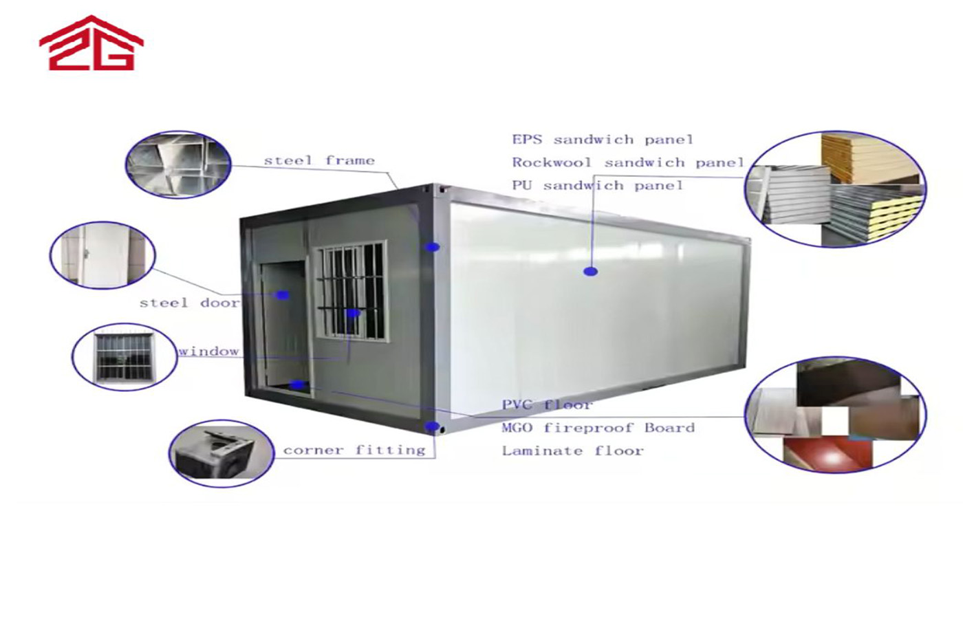 Toit et mur : tôle de fer de 0,5 mm, couche d'isolation EPS de 50 mm